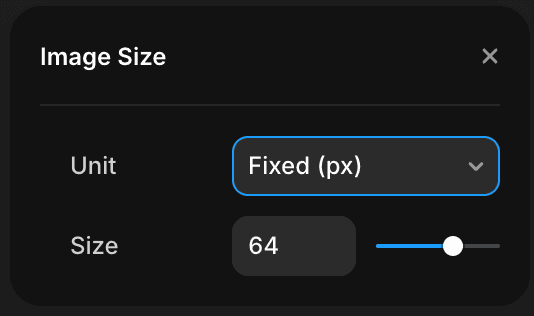 Controls the size of each image. You can choose from fixed size or relative.